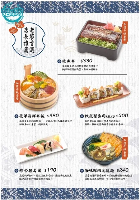 推薦:豪華海鮮丼、散鰻丼、軟殼蟹壽司