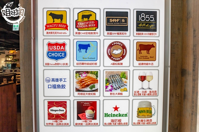 紐澳特級牛舌、黑毛和牛、安格斯黑牛、A極松阪豬、酸菜白肉、台灣豬腿肉、台灣豬五花、鮮嫩雞肉