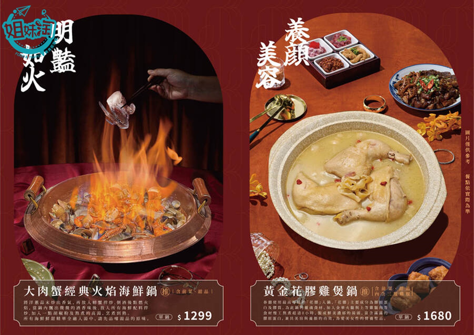 推薦:大肉蟹經典火焰海鮮鍋、紅燒牛腩鍋、花雕醉雞